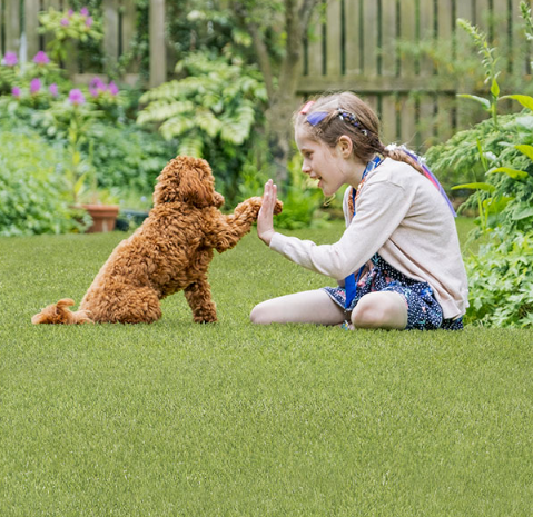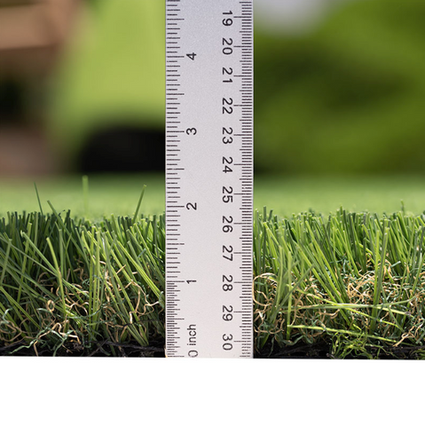 Evergrass® Emerald Green Turf 110 is your key to year-round vibrancy in both residential and commercial settings. This turf maintains its lush green appearance without the need for watering, ensuring no bare spots, seasonal die-offs, or pet-related damage. Enjoy exceptional foot comfort, even in high-traffic areas, thanks to its superior UV resistance that guarantees years of vivid emerald green allure. Featuring exclusive BioLuxe™ Worry-Proof Technology, it incorporates antimicrobial and odor control properties, providing a secure play area for children and pets. The innovative drainage system keeps mud at bay, and the unique M Blade shape mimics nature, allowing light to filter through from various angles, resulting in an authentically natural lawn appearance. Evergrass® is supported by a lifetime limited residential and 10-year commercial warranty, giving you added peace of mind. Say goodbye to the hassle and cost of lawn maintenance and hello to more time enjoying your lawn with Evergrass® Emerald Green Turf 110. This turf boasts a 1.75" (45MM) pile height, 84 oz./sq yard face weight, and a total weight of 110 oz.